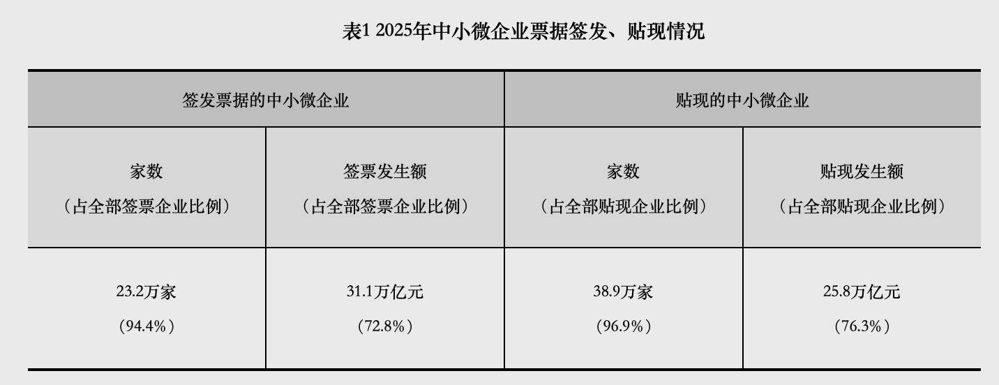 2025年,商业汇票承兑发生额42.7万亿元,贴现发生额33.9万亿元。截至2025年末,商业汇票承兑余额21.2万亿元,较2024年末增加7.2%;贴现余额16.5万亿元,较2024年末增加11.2%。