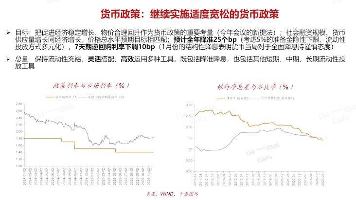 货币政策,我们这次还是讲要适度宽松的货币政策,当然,政府工作报告不会太明确地说要降准降息。但是我估计,今年降准的话,大概有个25个基点,降息的话大概是10-20个基点,我觉得降准降息都会有。