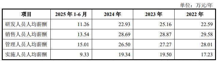 此外,作为技术型企业,研发投入是核心竞争力,但北方实验研发指标持续走弱:2022-2024年研发费用率分别为6.67%、6.31%、6.10%,连续三年下滑,同时,研发人员人均薪酬显著低于公司销售人员、管理人员,2024年研发人员薪酬出现同比回落。