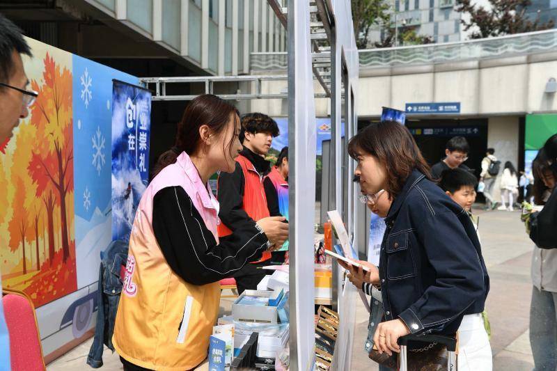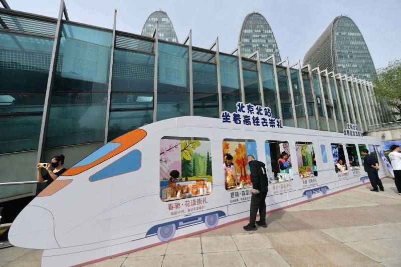 活动当日,北京北站下沉式广场上,写有“北京北站,坐着高铁去崇礼”的巨型主题展板格外醒目。现场打造了一列沉浸式“高铁列车”文创特产主题市集,吸引众多市民旅客驻足参观。列车市集满载崇礼四季风光,集中展示崇礼文创产品、文旅周边好物;以当地特有金花鼠为原型设计的崇礼城市吉祥物“冲冲”,深受小朋友喜爱。现场还设置抽奖、知识问答、集赞兑礼等趣味互动活动,让大家在玩乐中深入了解崇礼。