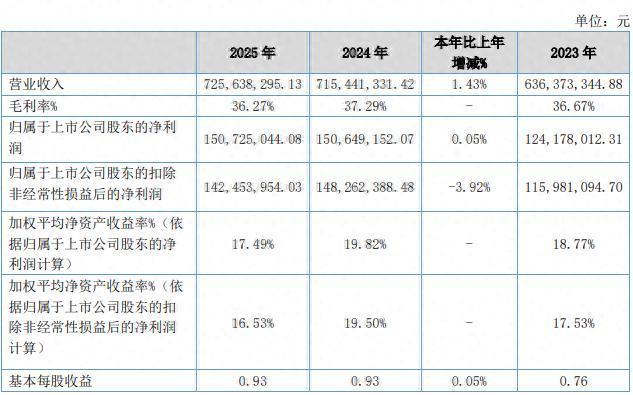 毛利率与净利率的双双下滑,也反映出这种业绩困境。2025年公司整体毛利率为36.27%,同比下降1.02个百分点;净利率为20.77%,较上年同期下降0.29个百分点,成本压力显现。