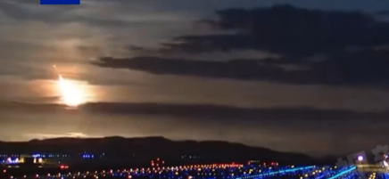 视频显示,原本昏暗的夜空中突然划过一个高亮的蓝白色“光球”,整片夜空被其照亮,随后“光球”在接近地面时颜色转为白黄色,映照出的部分天空的颜色也随之改变,“光球”消失后,夜空又恢复正常。